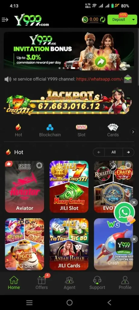 You can play Teen Patti Poker Ludo Dragon Tiger Andar Bahar Roulette Slot games and many more.